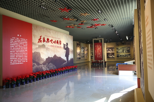“為抗戰(zhàn)吹響號(hào)角——中國共產(chǎn)黨與抗戰(zhàn)文化”主題展覽共分“堅(jiān)定文化自信發(fā)展抗戰(zhàn)文化”、“以文藝為刀槍吹響抗戰(zhàn)號(hào)角”、“領(lǐng)導(dǎo)文化抗戰(zhàn)凝聚民族精神”3個(gè)部分,展陳內(nèi)容豐富,呈現(xiàn)形式活潑新穎。特別是展覽第二部共分6個(gè)單元,將抗戰(zhàn)時(shí)期的各種文藝分門別類,形成了6個(gè)專題:“新聞報(bào)國:鉛字與子彈共鳴,筆桿與槍桿齊飛!”、“歌曲風(fēng)云:為抗戰(zhàn)發(fā)出怒吼,為大眾譜出呼聲!”、“曲藝號(hào)角:舞臺(tái)是抗日戰(zhàn)場(chǎng),戲劇是殺敵刀槍!”、“畫筆刀槍:用顏料銘記歷史,用畫筆鐫刻戰(zhàn)爭(zhēng)!”、“熱血文學(xué):人民文藝出碩果,優(yōu)秀文學(xué)呈井噴!”、“烽火影像:愛恨仇氣勢(shì)悲宏,家國情義憤填膺!”。反映了在中國共產(chǎn)黨領(lǐng)導(dǎo)下,廣大文藝工作者以筆為戈,記錄民族苦難、唱出民眾心聲、吹響時(shí)代號(hào)角,創(chuàng)作了無數(shù)富有戰(zhàn)斗性的文藝作品,涌現(xiàn)出眾多世代傳承的經(jīng)典之作。